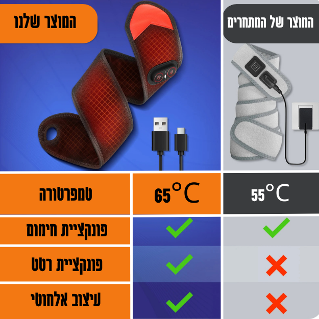 ⭐ חדשנות אמיתית – שילוב של חימום, רטט ודחיסה שמעניק פתרון מלא לשיקום והתאוששות.